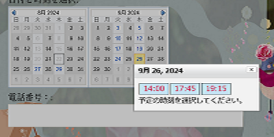 ご都合の良いお時間をクリックすると必要事項記入欄出てきますので、
